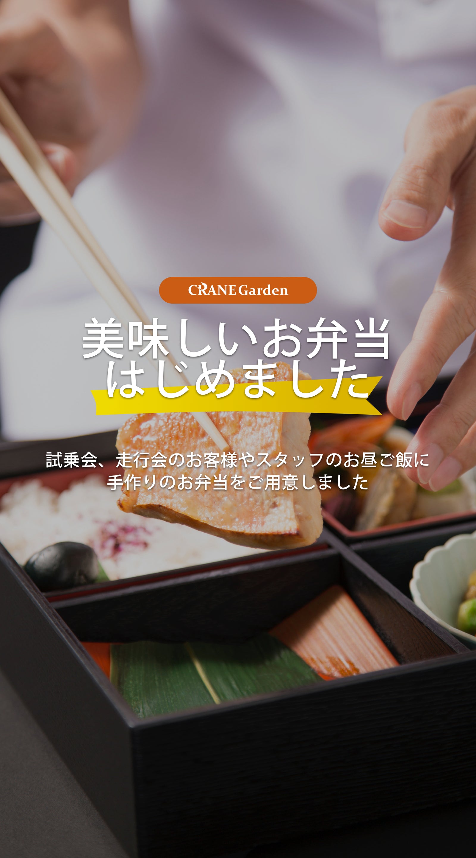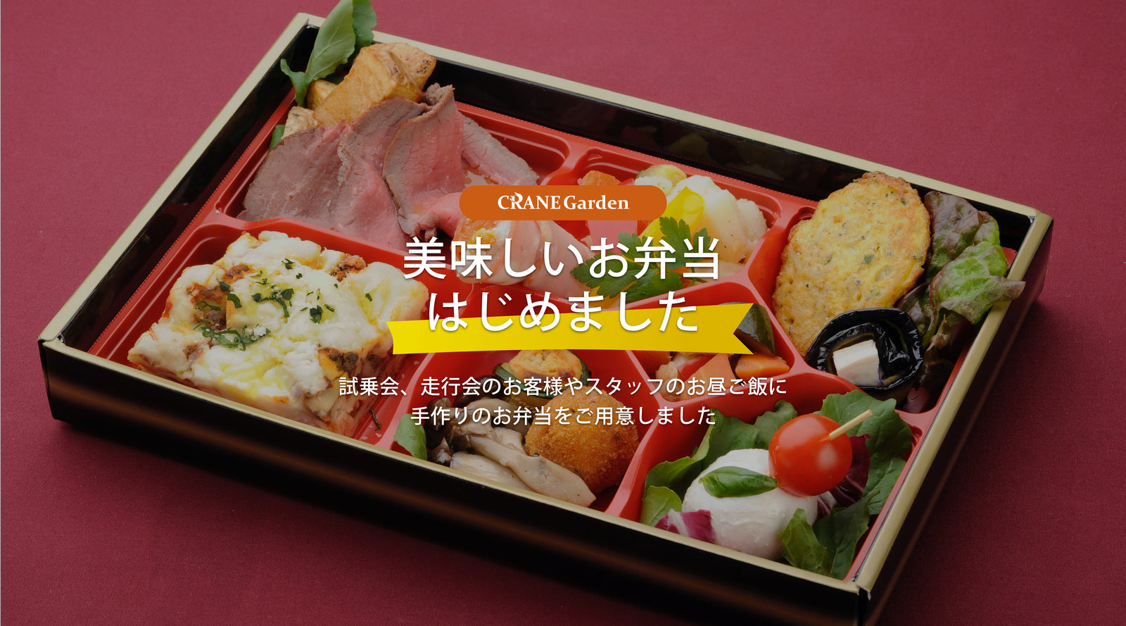 職人が作りだすバラエティに富んだオリジナルメニュー。ランチタイムを楽しませてくれるCRANE Gardenのお弁当は、こだわりの食材でメニューも豊富。ボリューム満点でサーキット走行のおともに最適です。